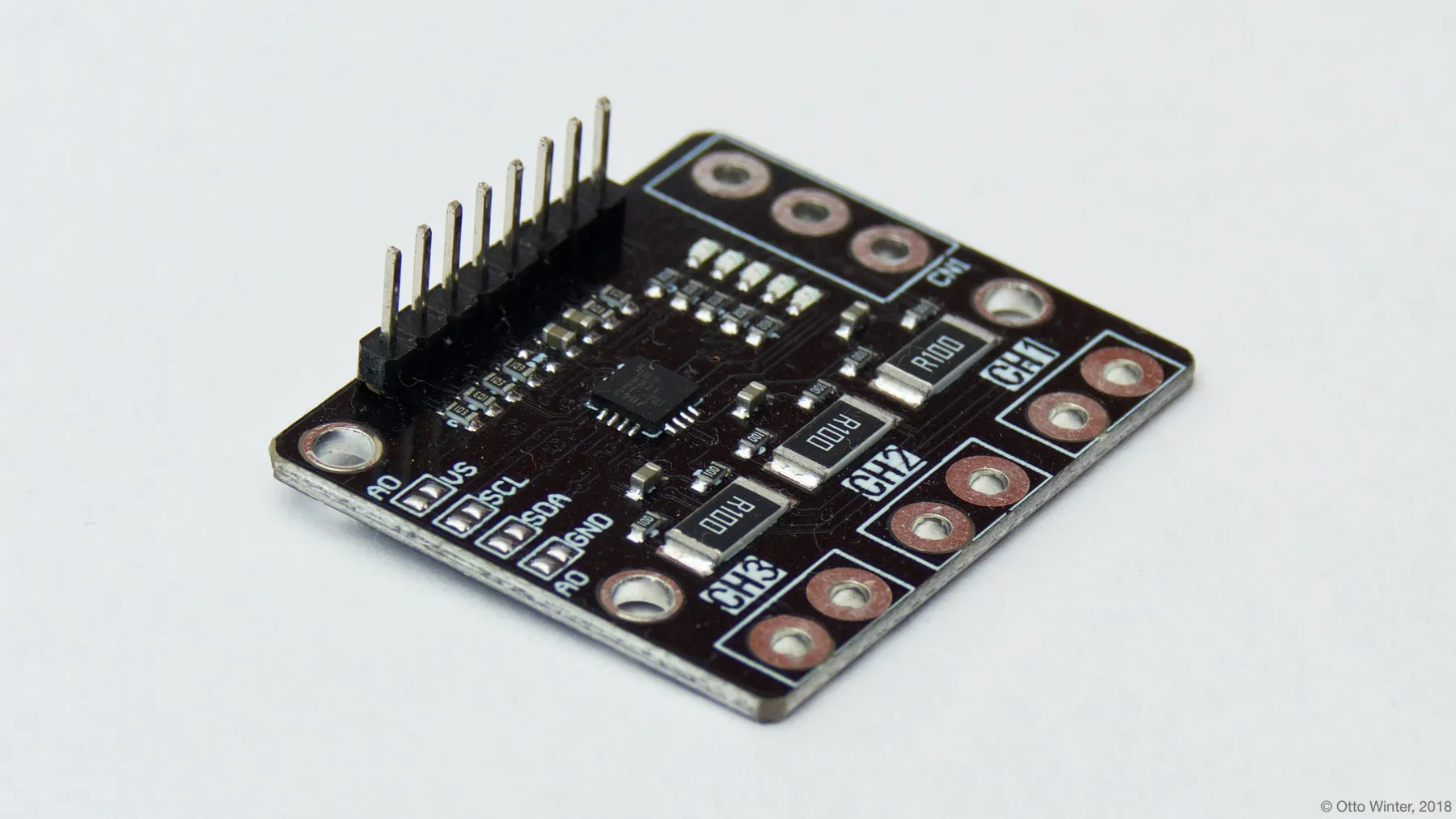 Pins on the INA3221. For communication only VS, GND, SCL and SDA need to be connected. Note that all 3 channels share the same GND reference.