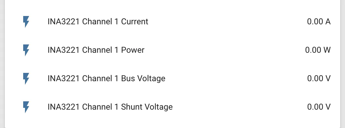 The ina3221 sensor platform allows you to use your INA3221 3-Channel DC Current Sensor (datasheet, switchdoc) sensors with ESPHome. The I²C Bus is required to be set up in your configuration for this sensor to work.